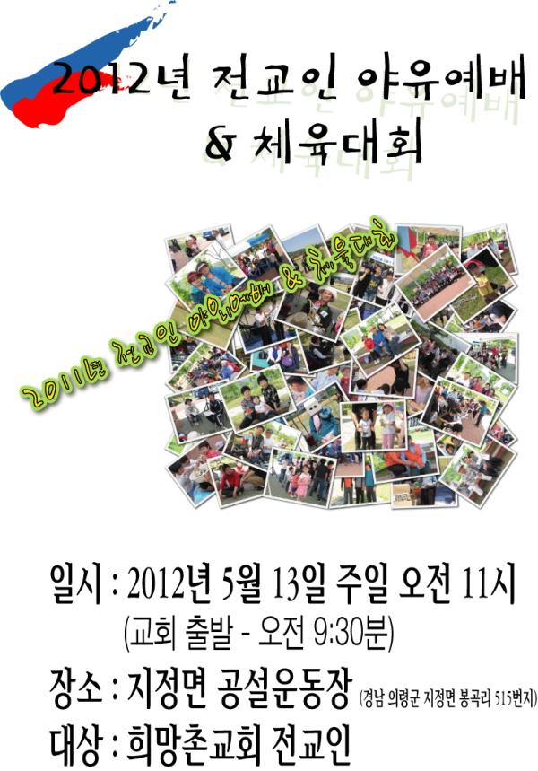 이전글 | 2013년 전교인 야유예배 및 체육대회 | 희망촌교회 | 2013.05.10 | 0 | 301 |