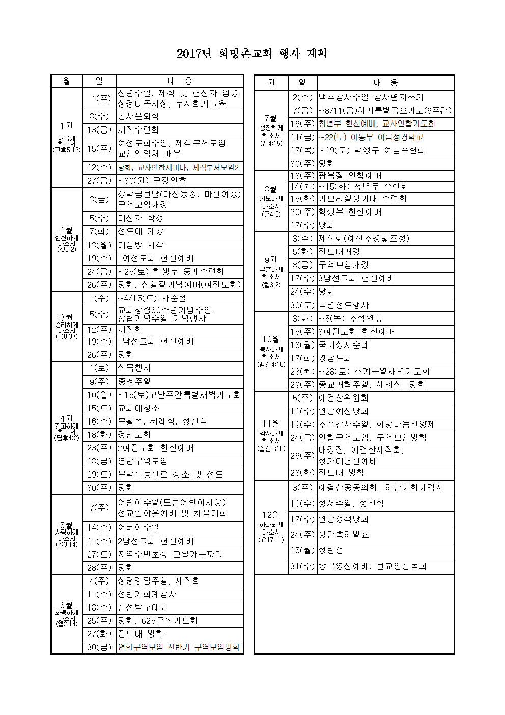 2017년 월별 행사일정