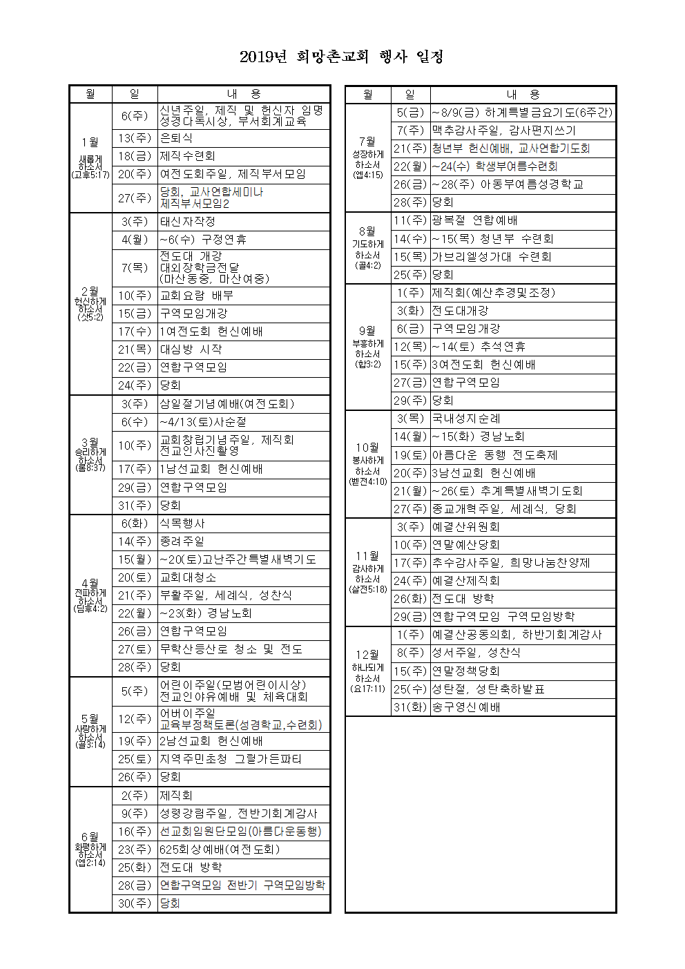 2019년 월별 행사일정