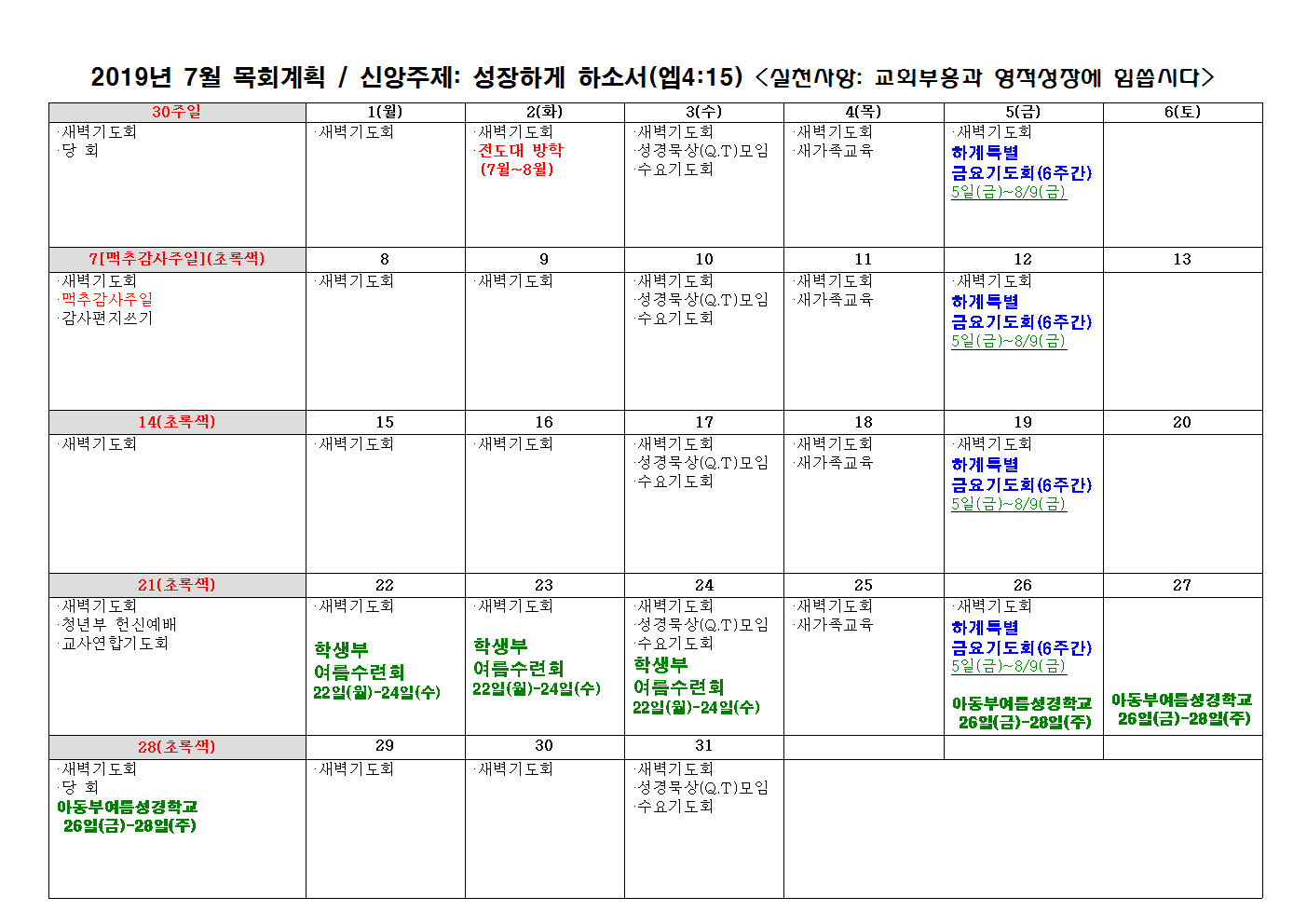 2019년 7월 행사일정