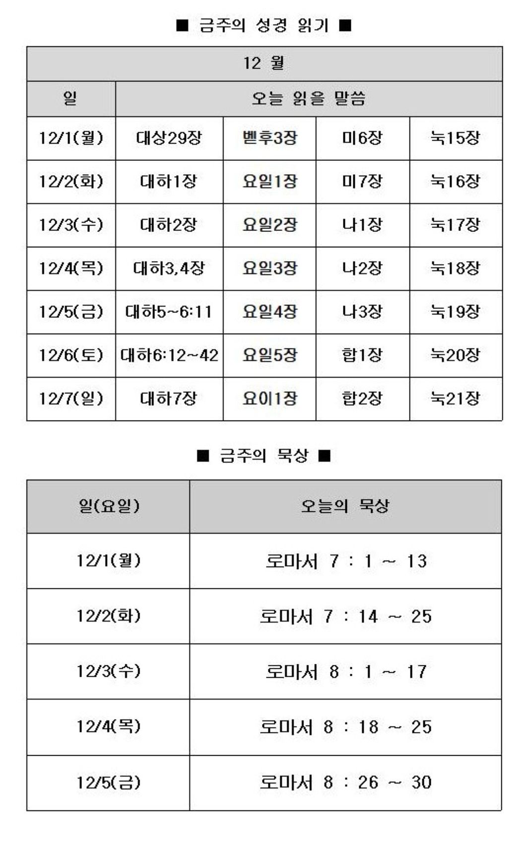 | 이전글 | 2025년 12월 7일 주부 | 김철우 | 2025.12.07 | 0 | 12 |