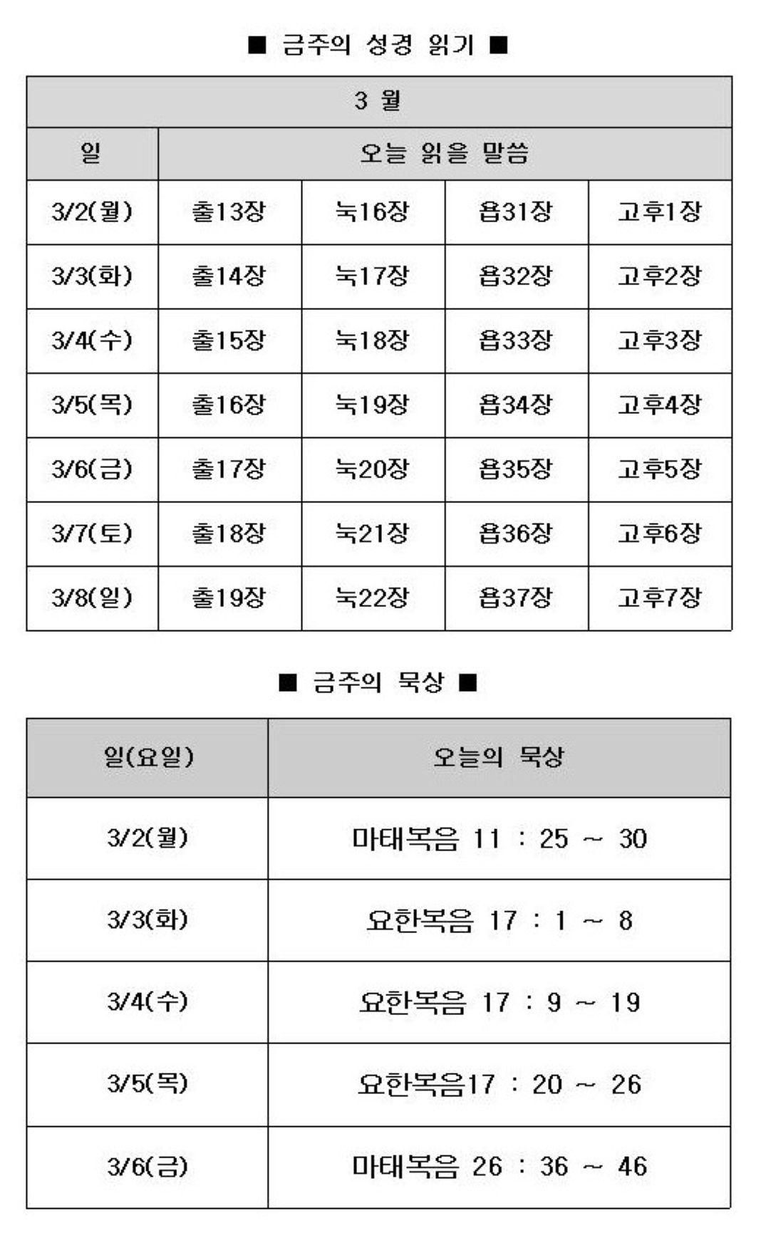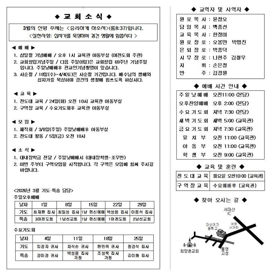 | 이전글 | 2026년 3월 8일 주보 | 김철우 | 2026.03.08 | 0 | 29 |