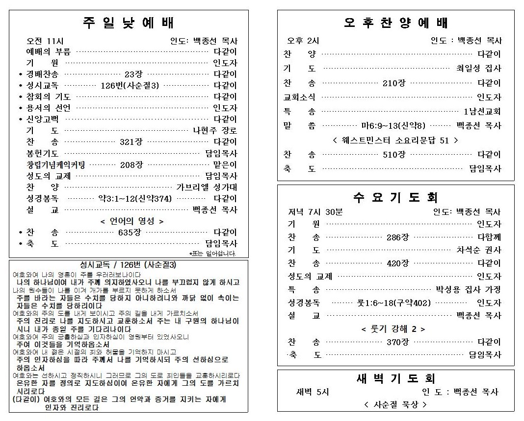 | 다음글 | 2026년 3 월 1일 주보 | 김철우 | 2026.03.01 | 0 | 27 |