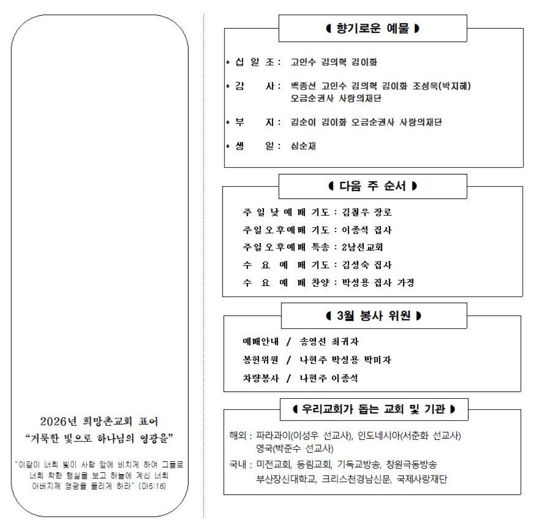 2026년 3월 22일 주보 김철우 2026-03-22 추천 0 댓글 0 조회 16 http://visioncommunity.onmam.com/bbs/bbsView/28/6618515 첨부파일 (0) 0
